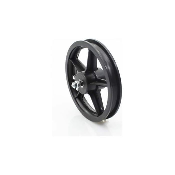 Het merkloze HB voorwiel heeft een maat van 12 1/2 x 2 1/4 inch en is vervaardigd uit zwart kunststoffen materiaal. Dit voorwiel is speciaal ontworpen als een vast exemplaar, dat eenvoudig te monteren is zonder verdere aanpassingen. Het wiel is geschikt voor gebruik op fietsen met een wielmaat van 12 inch en bevat een naaf die niet kan worden verwijderd. Dit product wordt geleverd per stuk en vormt een betrouwbare keuze voor vervangingen of upgrades.